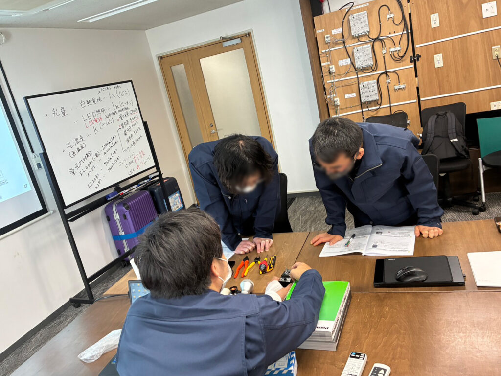 その後は数日間の座学研修で、テレビ、照明、IP、各商材の知識をしっかり叩き込んでもらいました。